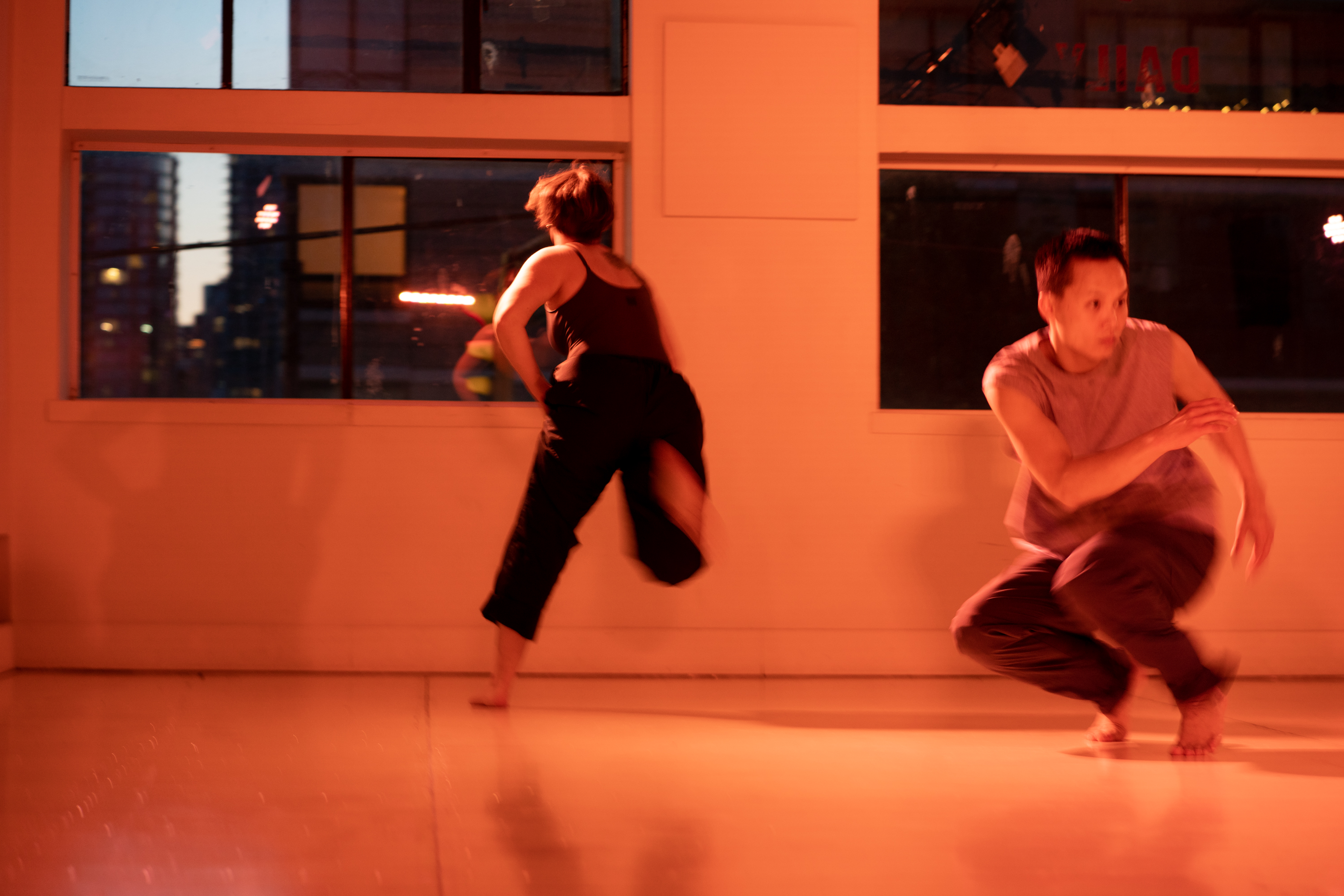 GRAND SAUT comprises three distinct dance choreographies developed over three years of intensive dance study and experimentation. It explores new methods for translating street, club, and social dance experience onto the stage. Each work manifests through innovative approaches to improvisation and freestyle, incorporating elements of liveliness, vulnerability, and relational concepts between each performer and the architectural space situated in Chinatown.